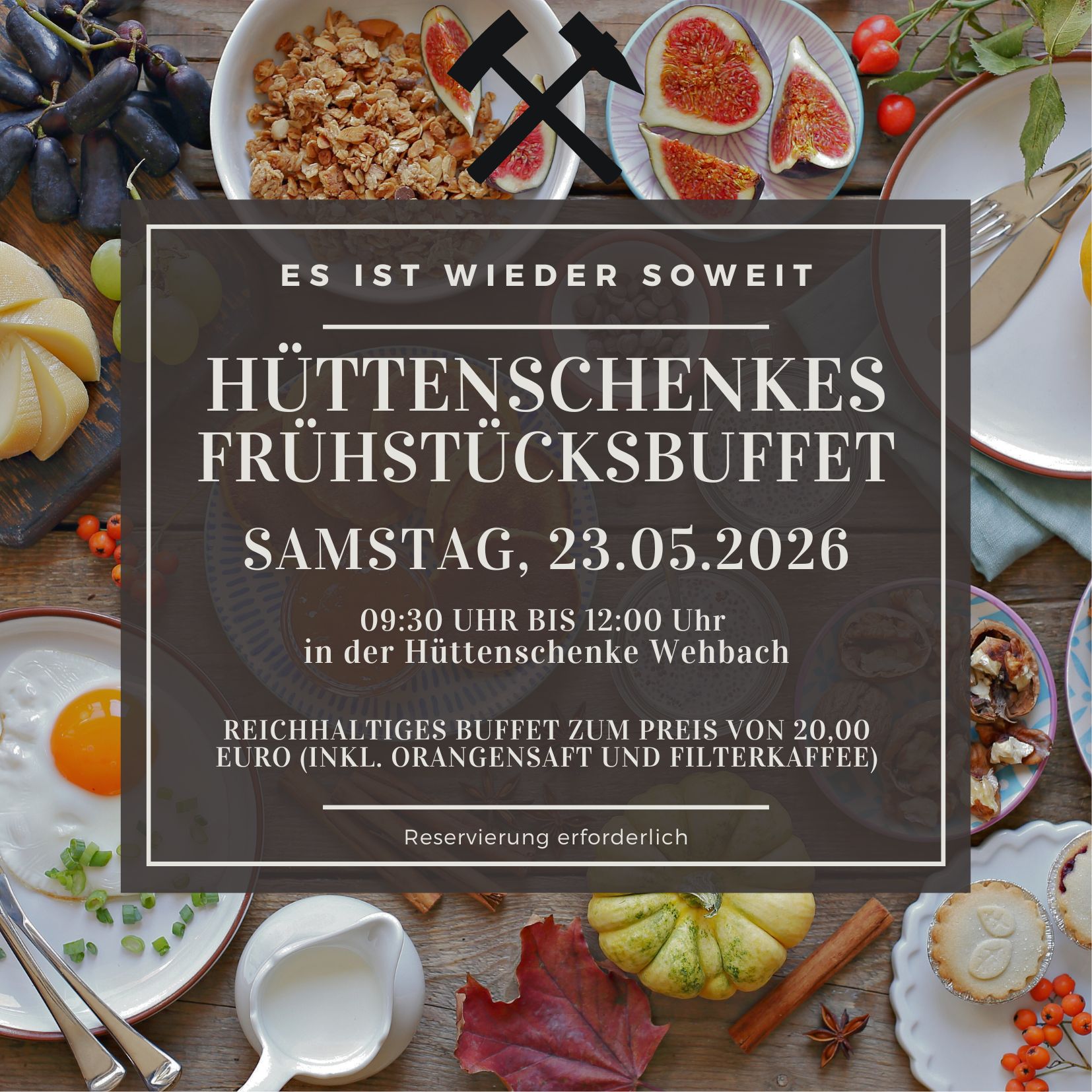 Das nächste Frühstücksbuffet steht an. Wir bitten um Reservierung.