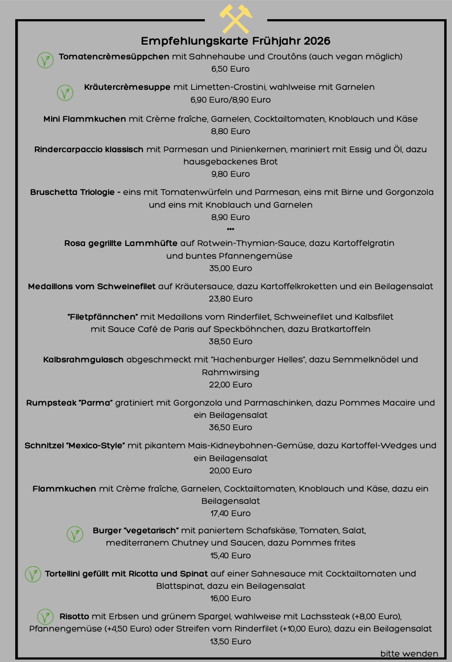 Hier finden Sie unsere aktuelle Speisenkarte.